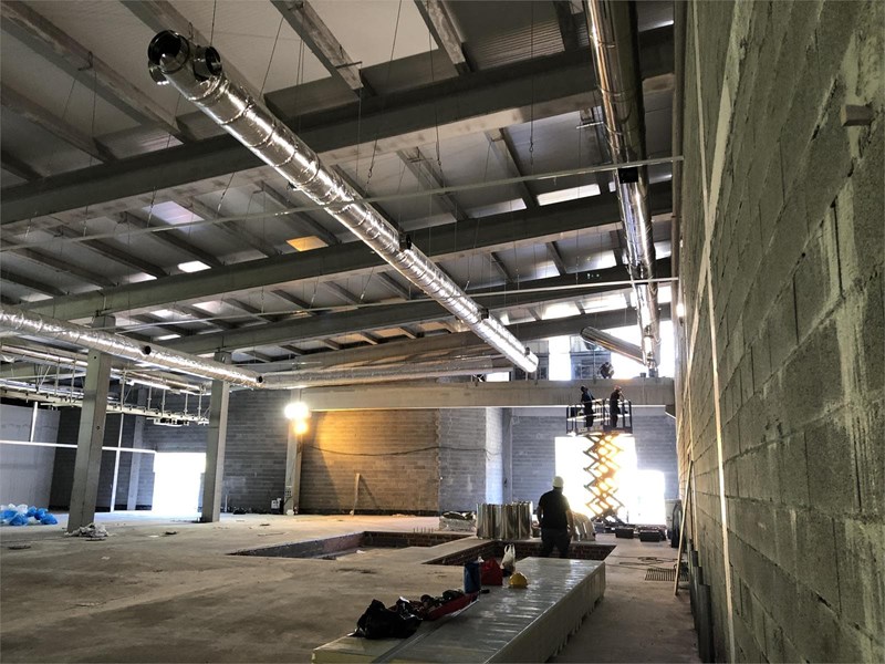 Ventilación con recuperadores de calor para el resto de zonas y red de distribución de aire por conductos de chapa de acero galvanizado.