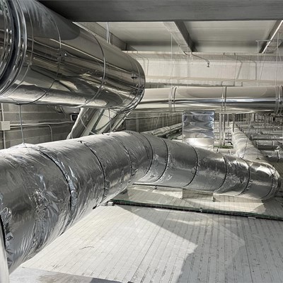 Climatización, ventilación y deshumectación de la zona de producción con UTAs con recuperación de calor y red de distribución de aire por conductos de chapa de acero inoxidable ocultos en falso techo técnico. Difusión de aire mediante difusores circulares con control de impulsión de alcance variable según termperatura.